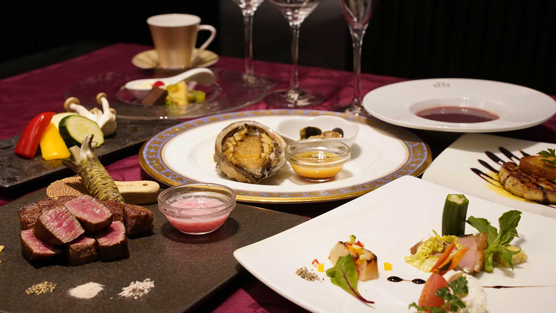 豪華な鉄板焼き、彩り豊かなサラダやスープ、季節のお野菜をふんだんに使った料理など、