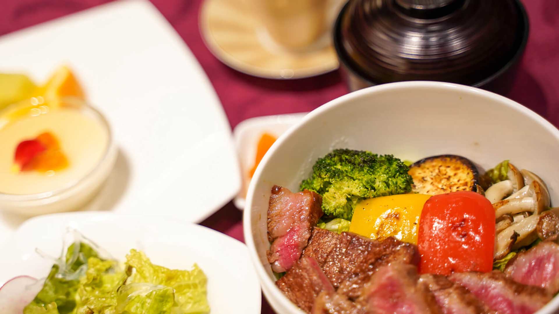 厳選した国産サーロインを使用したステーキ丼。味付けで使用した醤油と上質な甘みのある肉汁がご飯に染みて、どんぶりならではの味わいをお楽しみいただけます。